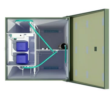 Базовая модель септика Топас с двумя компрессорами с самотечным отводом. Рекомендуется для любого грунта, главным условием является – низкое залегание грунтовых вод на участке.